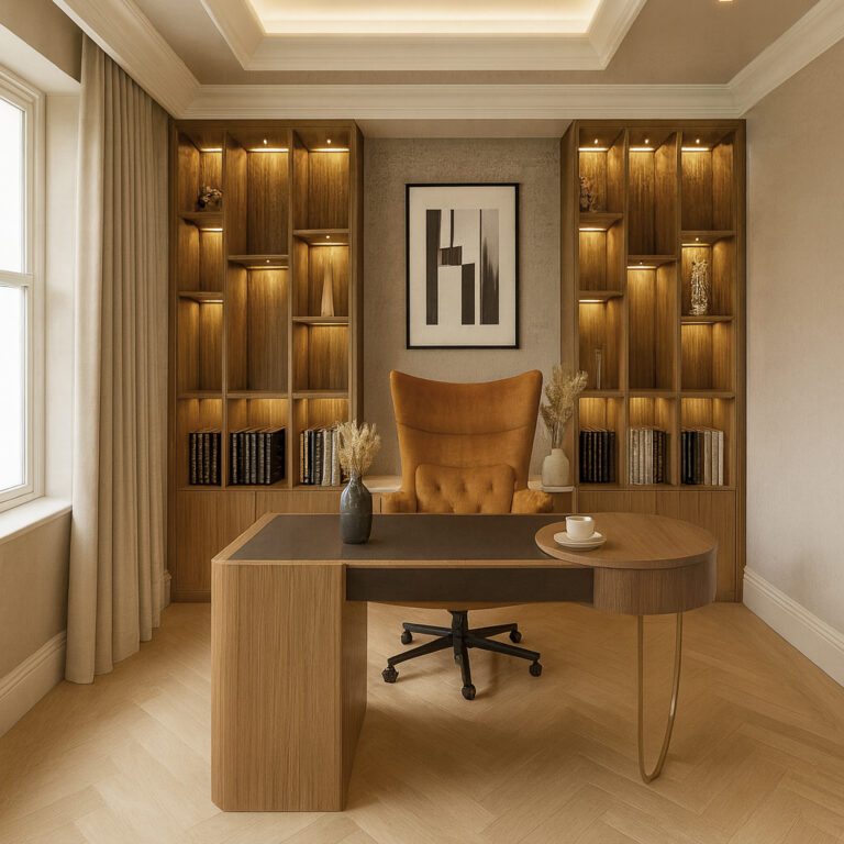 Our team was commissioned to lead the interior architecture and design, with a mandate to bridge the gap between heritage and modernity. The result is a “Contemporary Georgian” aesthetic—where classical proportions and architectural details meet clean, modern lines. Beyond the living quarters, the residence is a hub of wellness and entertainment, featuring a private gym, cinema, games room, bar, and a world-class spa suite with a large indoor swimming pool.