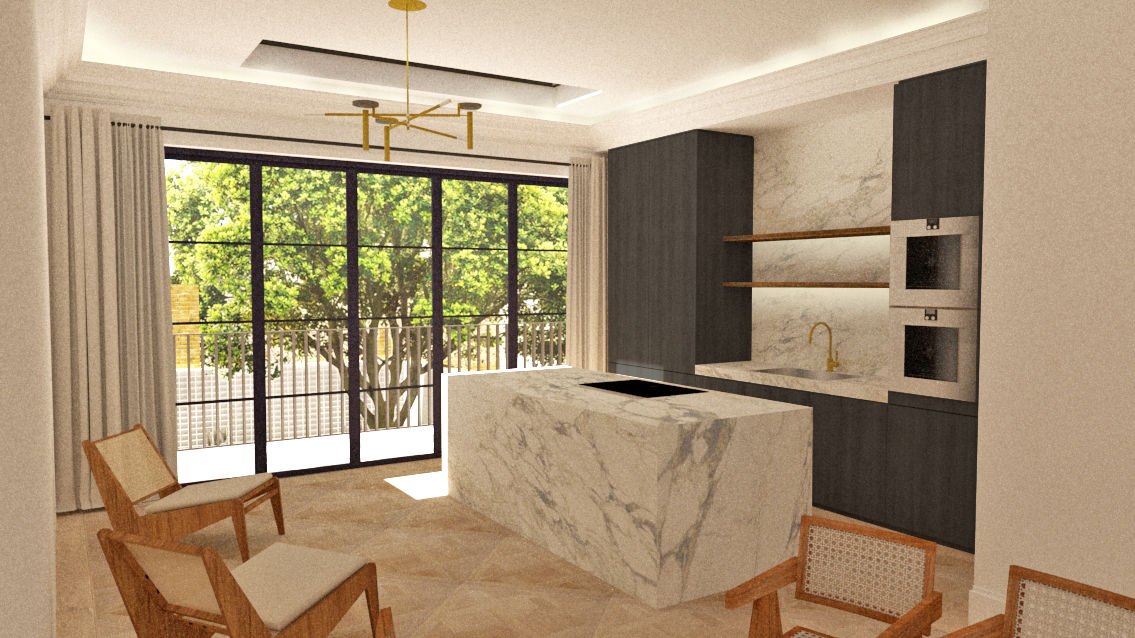 Luxury interior design for the kitchen area of celebrity client's private property in Chelsea, London.
