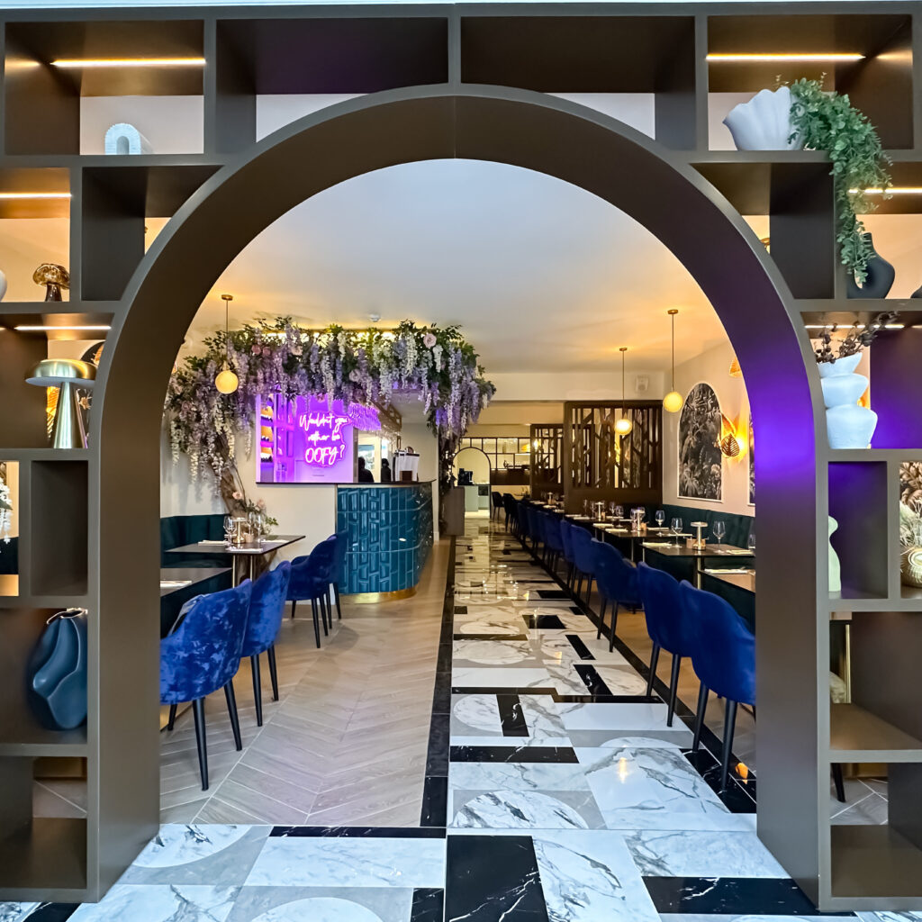 By focusing on clean lines and refined finishes, we established an elevated backdrop for the restaurant’s vibrant culinary offerings. A key element of our strategy was sustainability and resourcefulness; we successfully replanned and repurposed the client’s existing furniture, integrating it seamlessly into the new layout. To anchor the entire design, we introduced a grand feature entrance arch, providing a definitive sense of place and a sophisticated welcome for every guest.